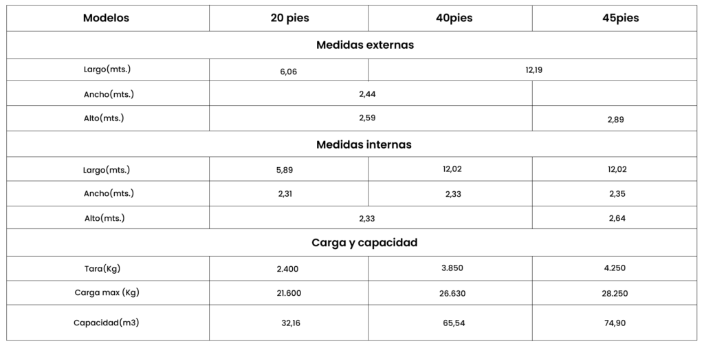 Cuatro esquinas especiales, que facilitan el trincaje tanto en buques como en camiones.